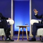 ‘I know all of you will see with your own eyes later this evening when he opens up his dinner to the press, and perhaps you will see him when he signs the bill to reopen the federal government,’ she said. ‘So stay tuned on plans for that.’